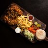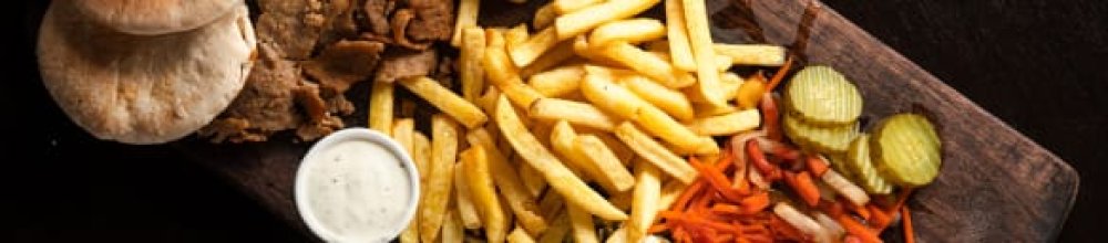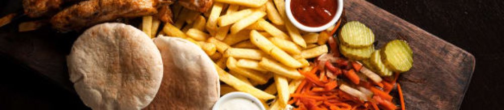 Alle schotels worden geserveerd met mix salade, friet of aardappelschijfjes, 2 pita's of 1 Turks brood en twee sauzen naar keuze