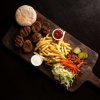 Alle menu's worden geserveerd met friet, twee sauzen naar keuze en een blikje frisdrank naar keuze